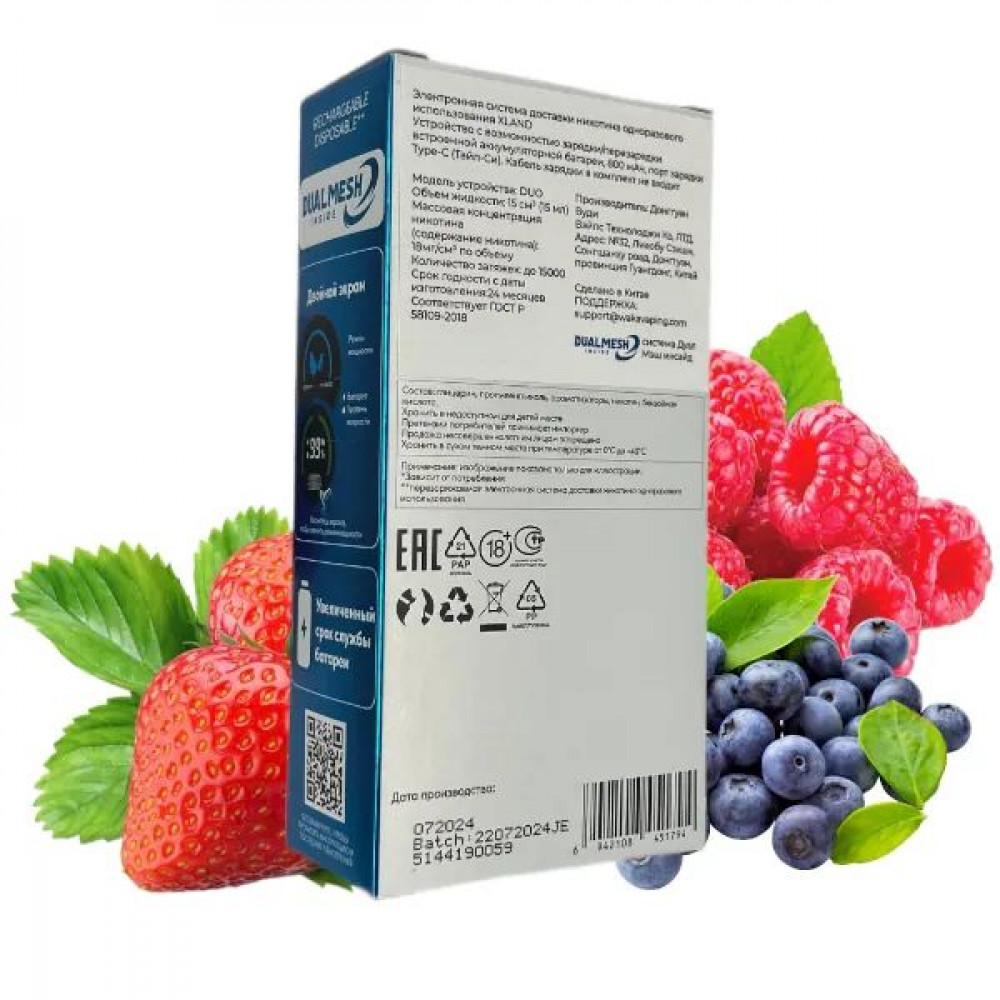 | Аромат/вкусТройная ягода | БрендWAKA | ДисплейLed |